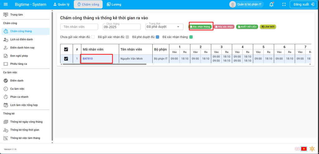 Bước 4: Xác nhận và chốt công tháng cho nhân viên