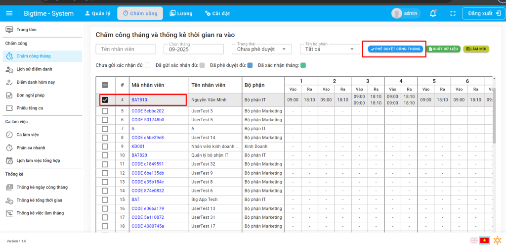 Bước 3: Phê duyệt công tháng cho nhân viên