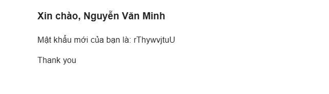 Sau khi nhấn link, bạn sẽ thấy thông báo xác nhận rằng hệ thống đã gửi mật khẩu mới về email của bạn.