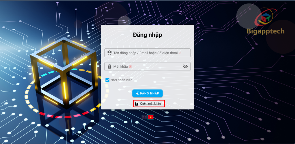 Vào trang đăng nhập của hệ thống https://bigtime-stg-2.bigapptech.vn/login