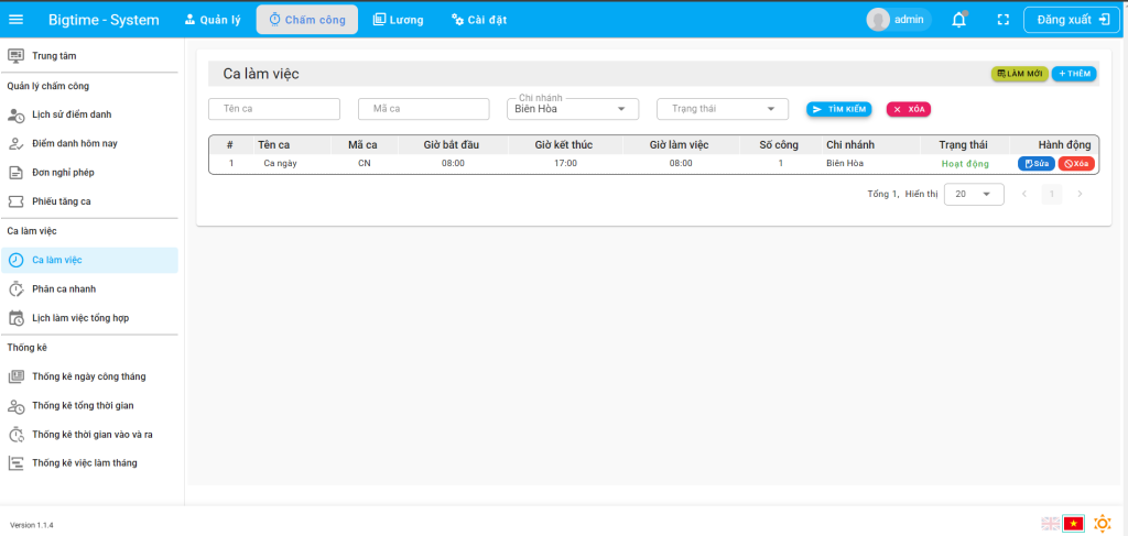 Bước 1: Truy cập giao diện ca làm việc và nhấn nút thêm